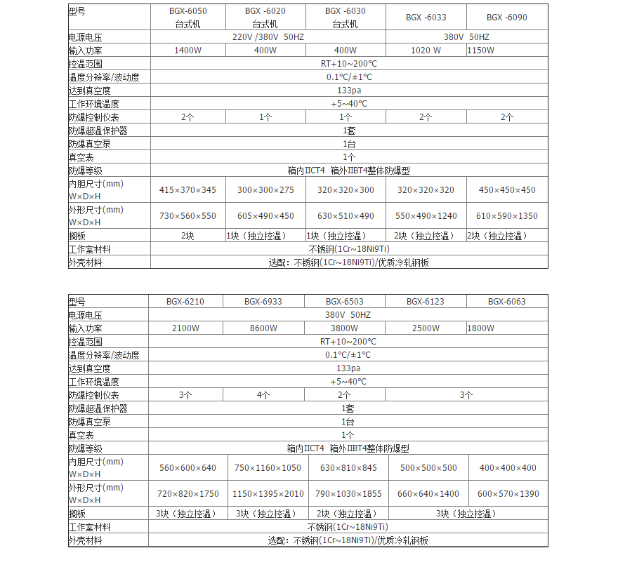防爆真空干燥箱技術參數(shù):